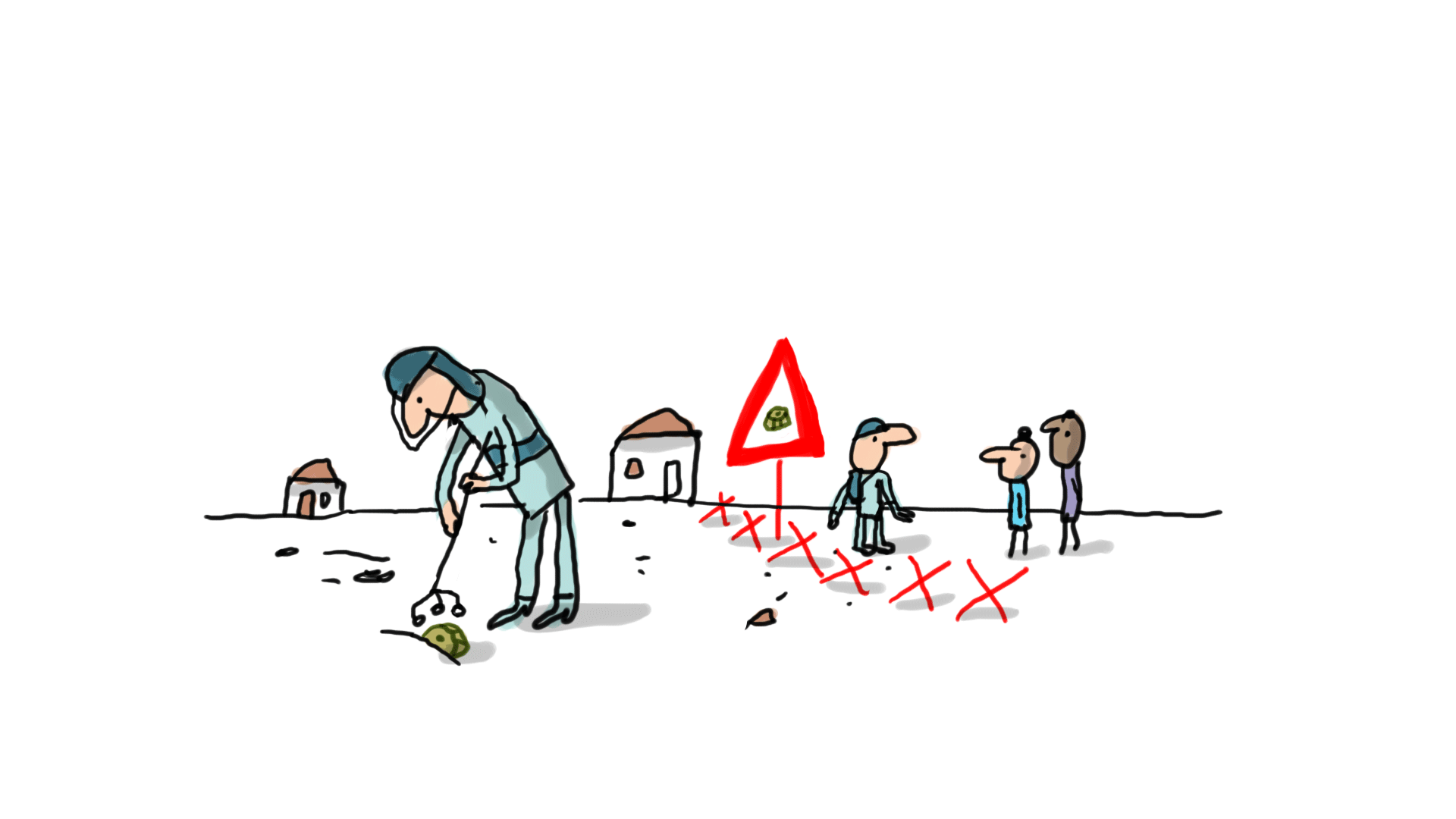 gif illustré montrant des enfants jouant au ballon près d'une zone de guerre où se trouve enfouie une mine antipersonnel