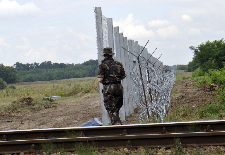 - Des militaires hongrois finissent de construire un mur à la frontière avec la Serbie pour empêcher les migrants d’entrer dans leur pays. © Mehmet Yilmaz/ Anadolu Agency/ AFP