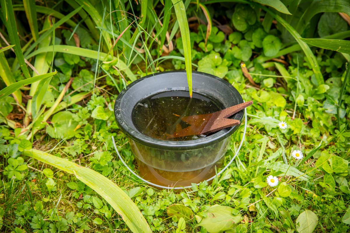 - Les moustiques pondent sur le plongeoir et, quand les œufs éclosent, les larves tombent au fond du seau et ne peuvent pas remonter. (© Vincent Gire/Milan presse)