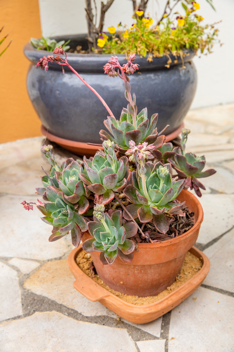 - Remplir de sable les coupelles sous les pots de fleurs permet d’éviter que l’eau s’y accumule et ne devienne stagnante. (© Vincent Gire/Milan presse)