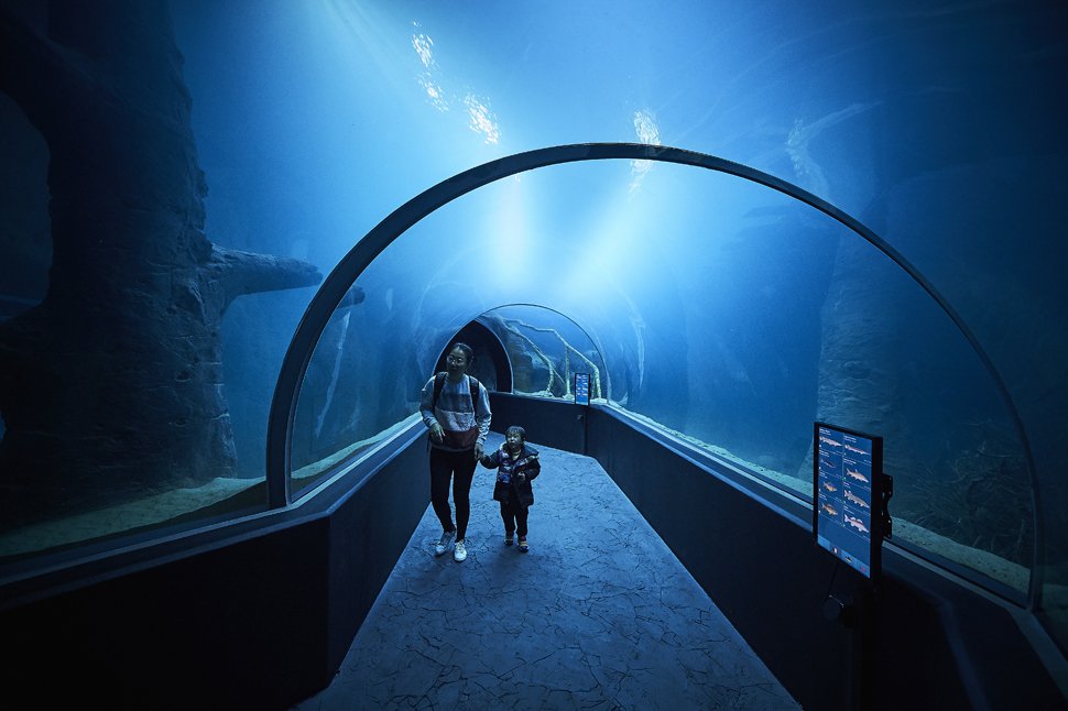 - L’eau douce ne représente que 2,5 % des réserves naturelles d’eau de la planète. Avec son parcours en immersion l’aquarium souhaite sensibiliser le public sur l’importance de la protection de ces milieux si rares. (© Sedrik Nemeth/Aquatis.)