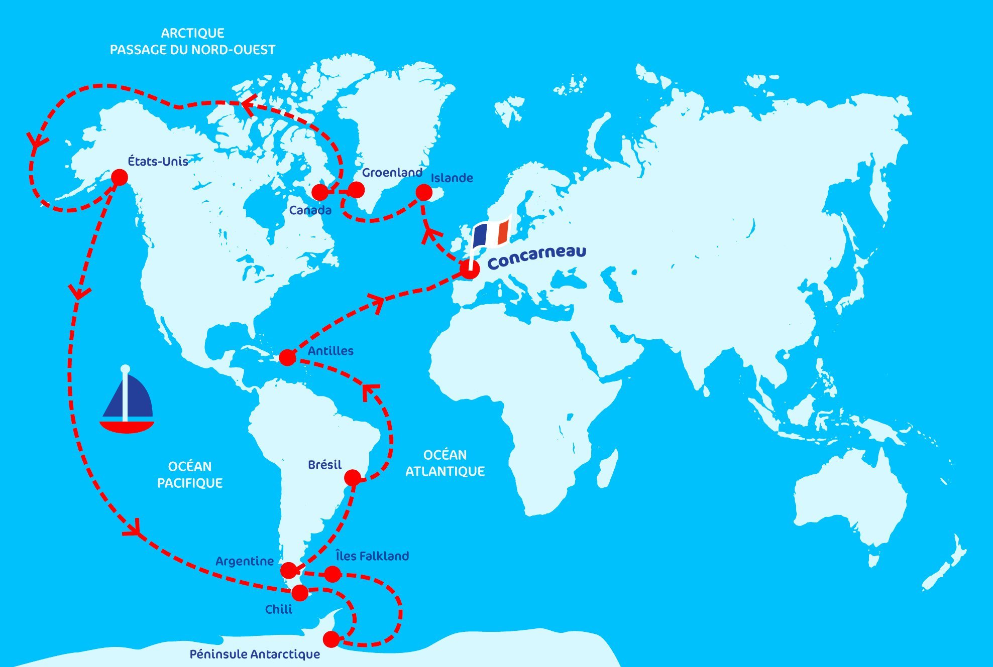 Clique sur cette carte pour découvrir le parcours de leur tour du monde :
