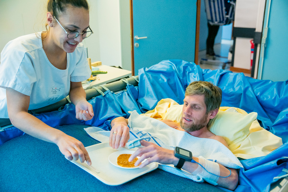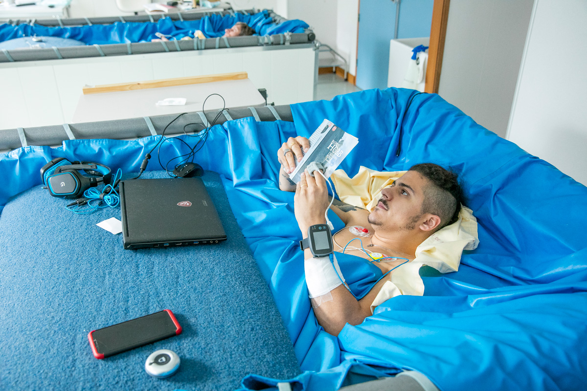 Grégory : Le fait de me « tester », de voir si j’allais être capable de tenir si longtemps sans bouger. C’est un vrai défi pour moi, car je suis très sportif : je fais du vélo, de la course, de la natation… Je trouve aussi très intéressant d’observer le travail des scientifiques. Ils nous expliquent les expériences qu’ils font sur nous, c’est passionnant.