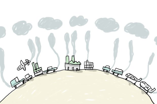 Le climat de la Terre change, il se réchauffe. Principalement à cause de gaz produits par l’activité humaine : les gaz à effet de serre. Ces gaz, en s’accumulant dans l’atmosphère, augmentent l’effet de serre naturel de la Terre. C’est-à-dire qu’ils agissent comme une couverture, ils empêchent la chaleur du soleil de s’échapper dans l’espace.