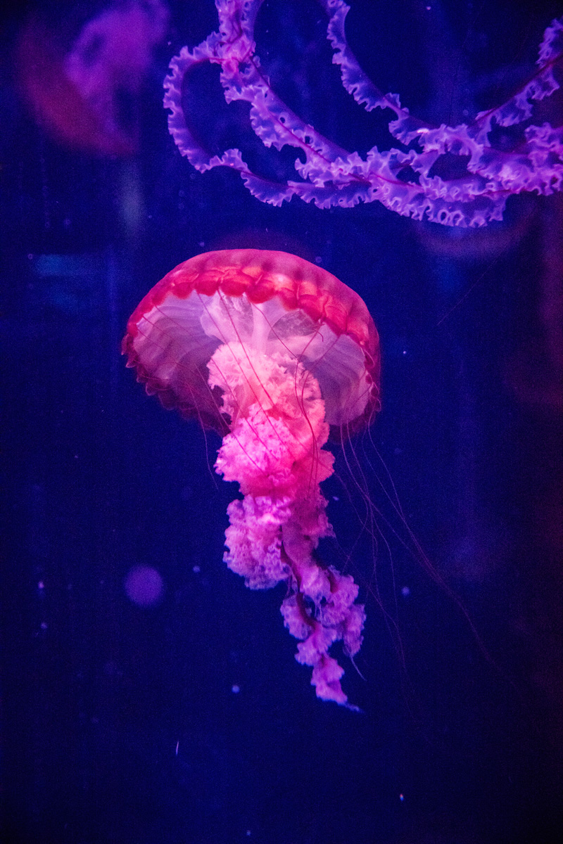 À l’Aquarium de Paris, les méduses sont les nouvelles stars ! La pièce qui les présente est très sombre, pour mettre en valeur leurs couleurs lumineuses. En tout, 45 espèces sont présentées ici au public depuis janvier 2019.