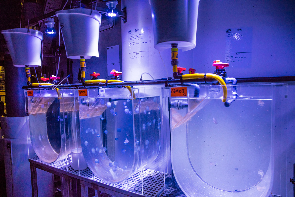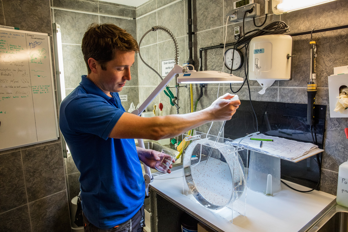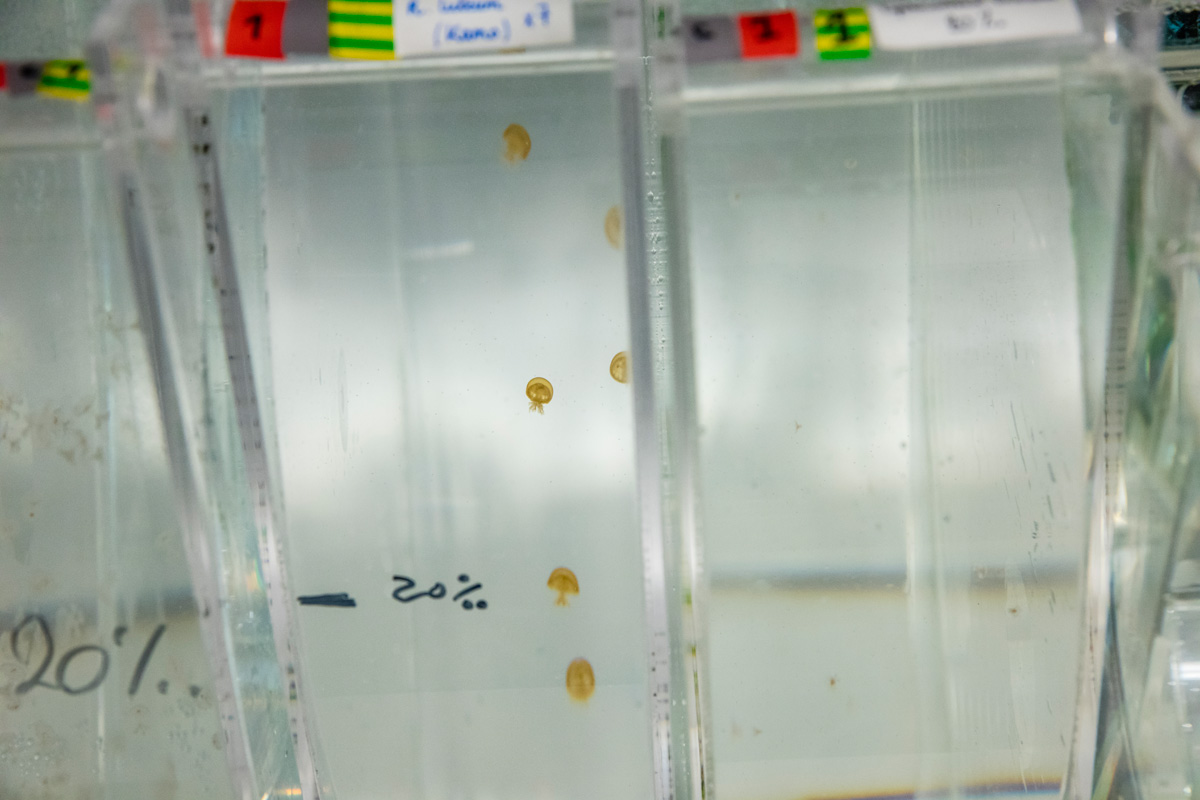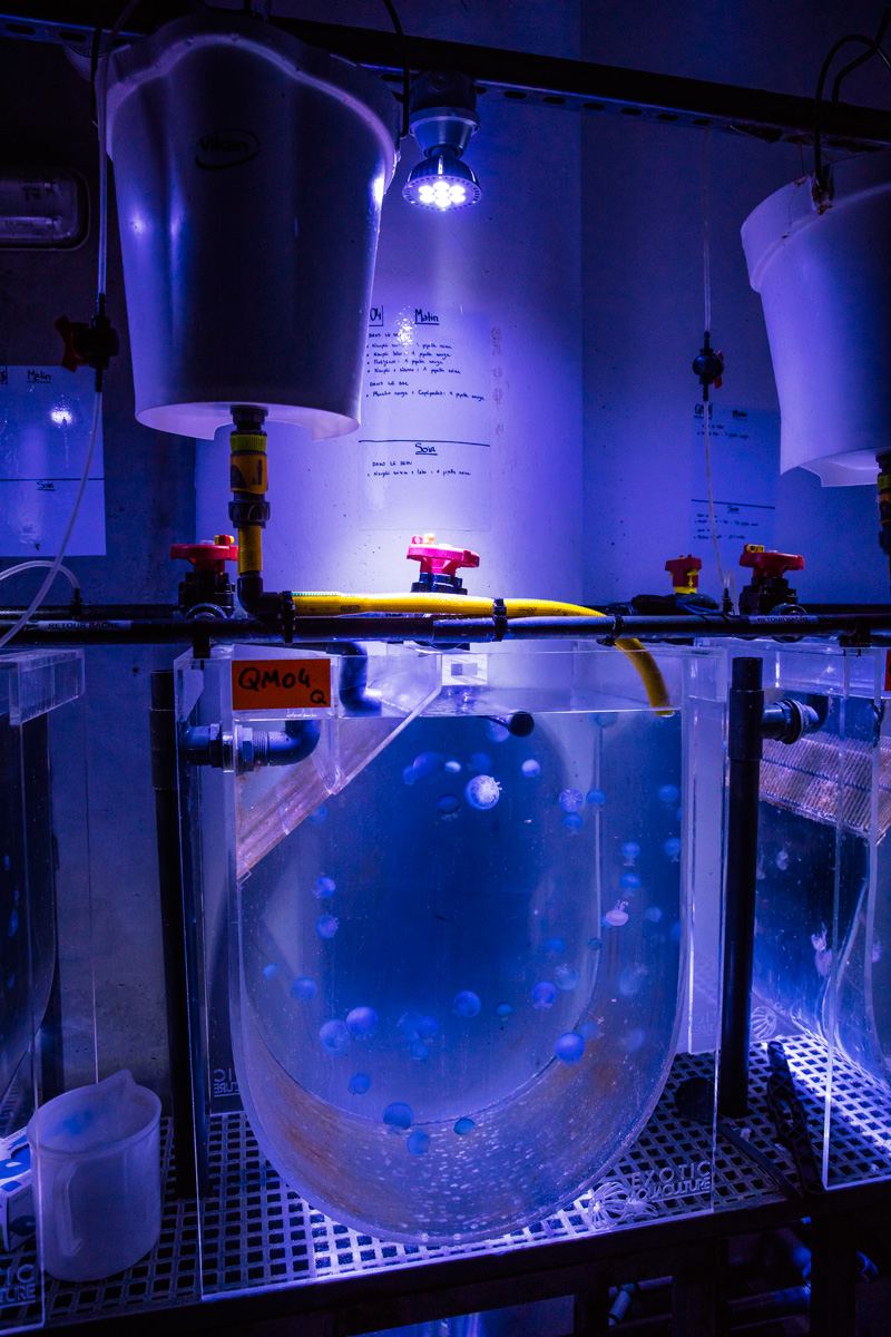 C’est dans un laboratoire spécial, fermé au public, que Guillaume et ses collègues font naître et grandir les bébés méduses. Une opération délicate, car il faut régulièrement les nourrir et changer leur eau.