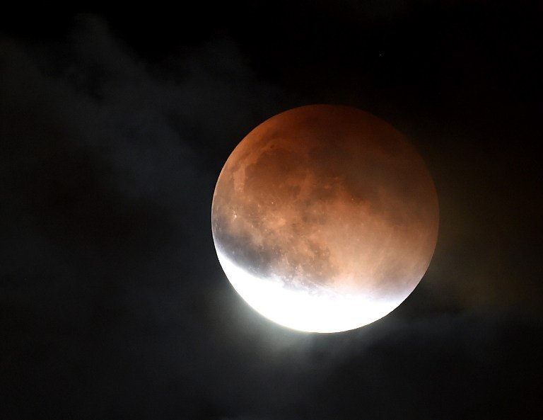 - Prise en Californie, aux États-Unis, cette photo montre la Lune en train de se colorer en rouge. © Kevin Winter / Getty Images/ AFP