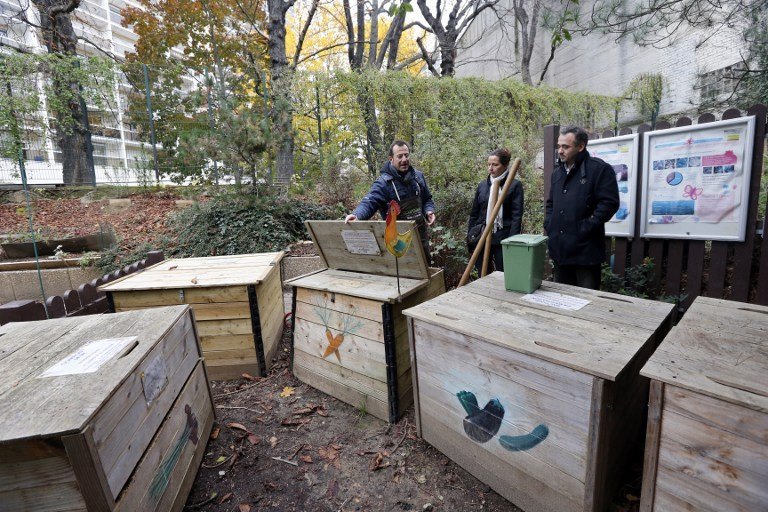 - Des bacs à compost dans un jardin public à Paris. (AFP PHOTO / PIERRE VERDY / AFP / PIERRE VERDY)