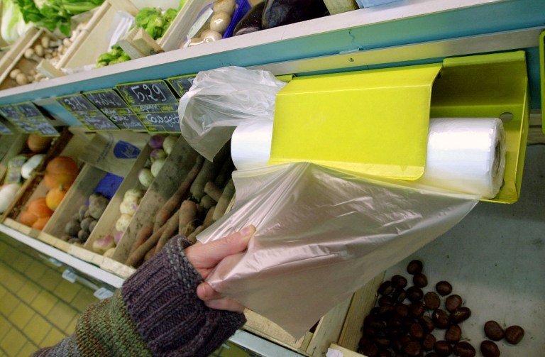 - Un sac en plastique proposé dans un supermarché. (AFP / MYCHELE DANIAU)