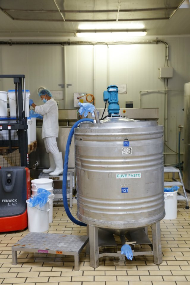 Bernard, le responsable qualité de l’usine, goûte la glace avant qu’elle soit fabriquée en grande quantité. © Vincent Gire / Milan presse