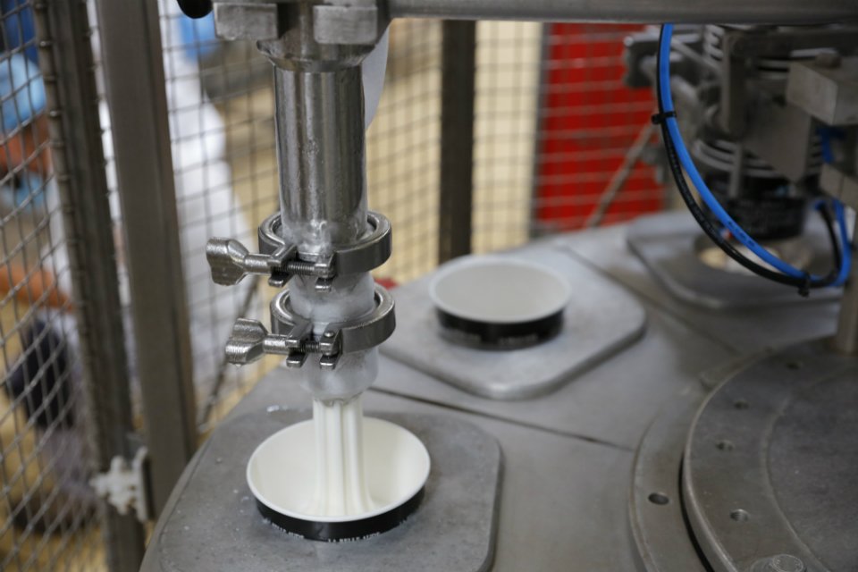 Enfin, le sorbet, encore un peu liquide, est mis en pot grâce à une machine. À la fin de la chaîne de fabrication, un ouvrier réceptionne les pots et les rentre dans un surgélateur : « Dans cet immense congélateur, il fait – 30 °C ! On a l’impression de vivre une vraie tempête de neige. »