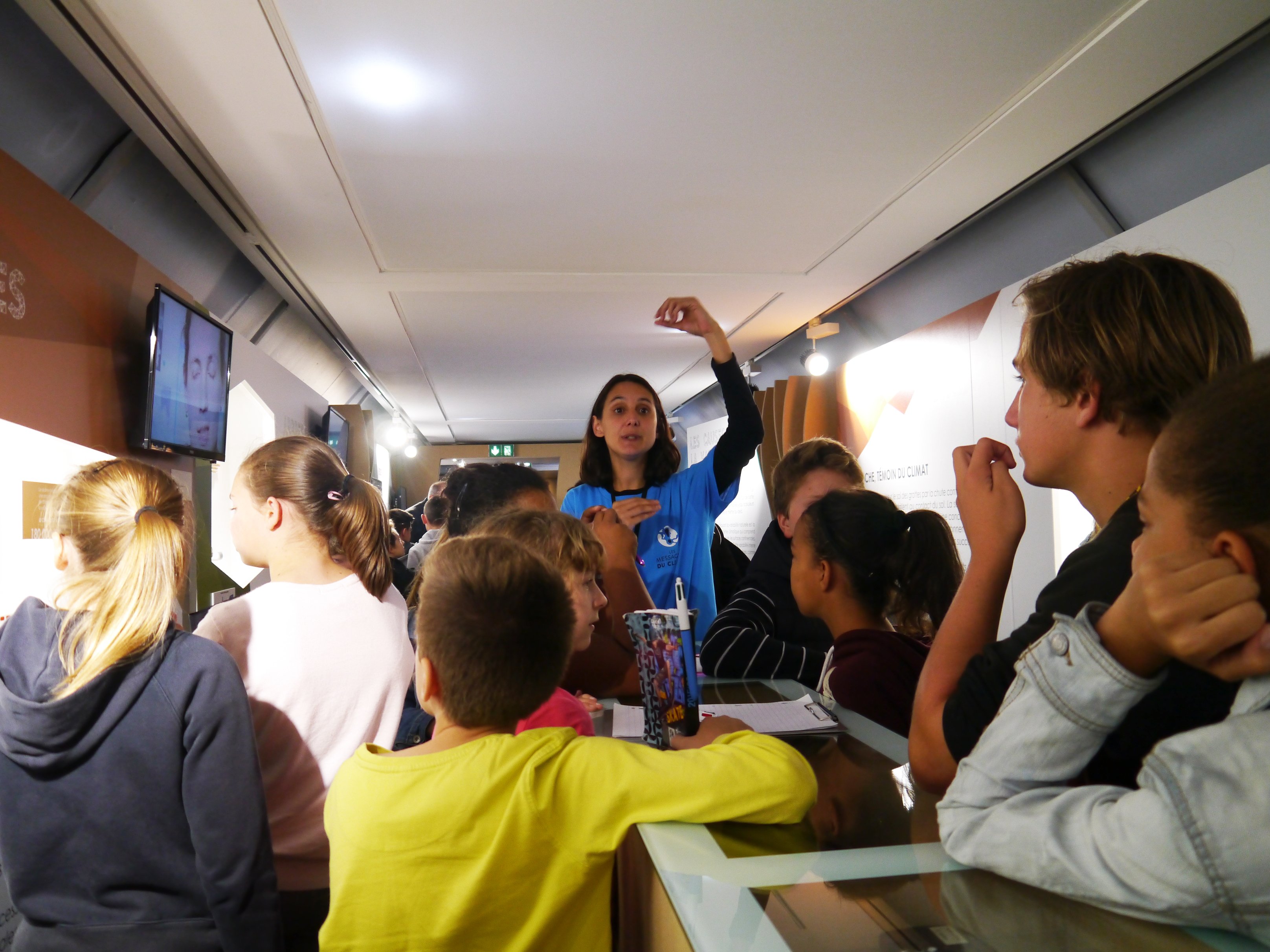 - À l’intérieur du train, une animatrice donne aux enfants des explications sur l’effet de serre. © Édith Marot