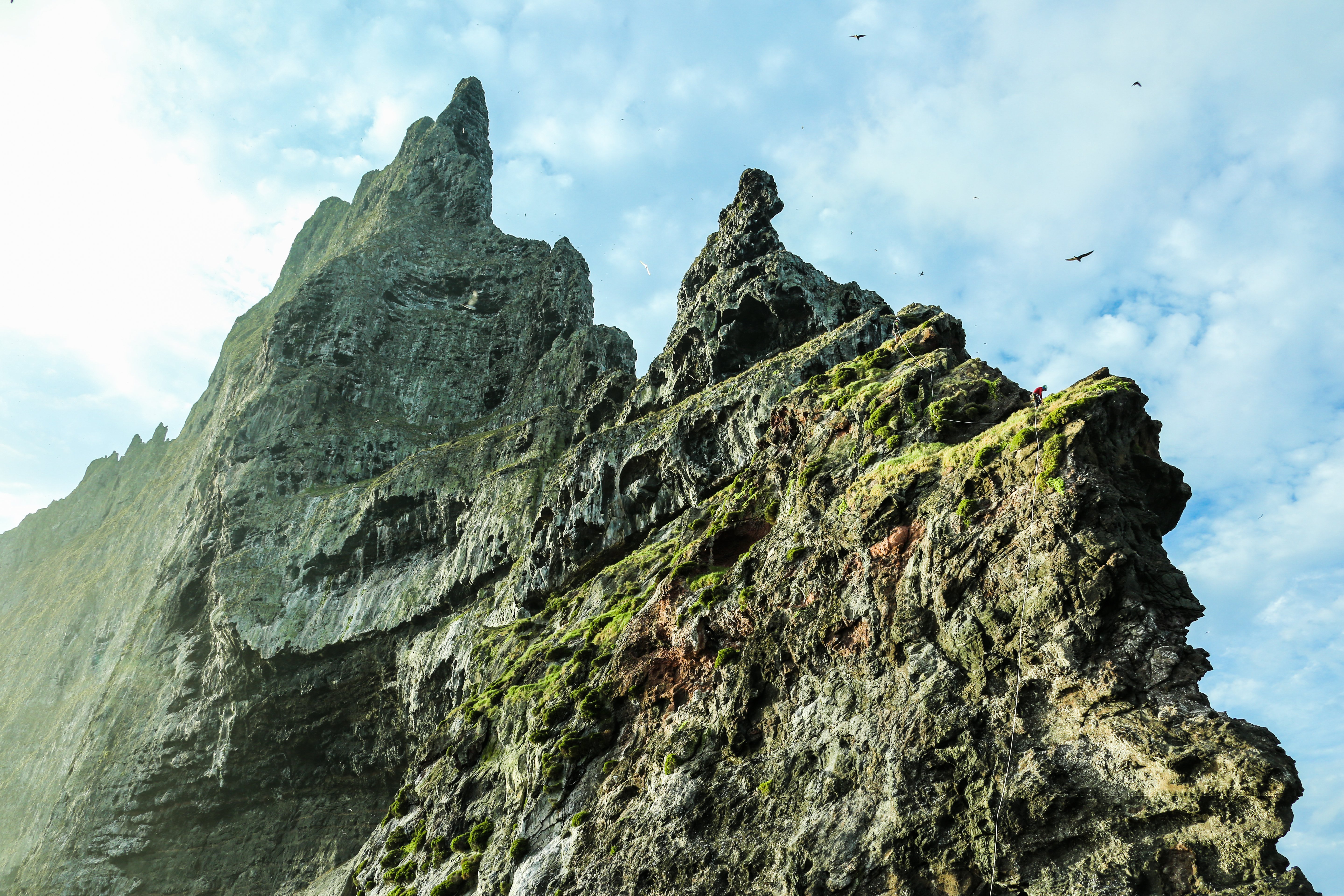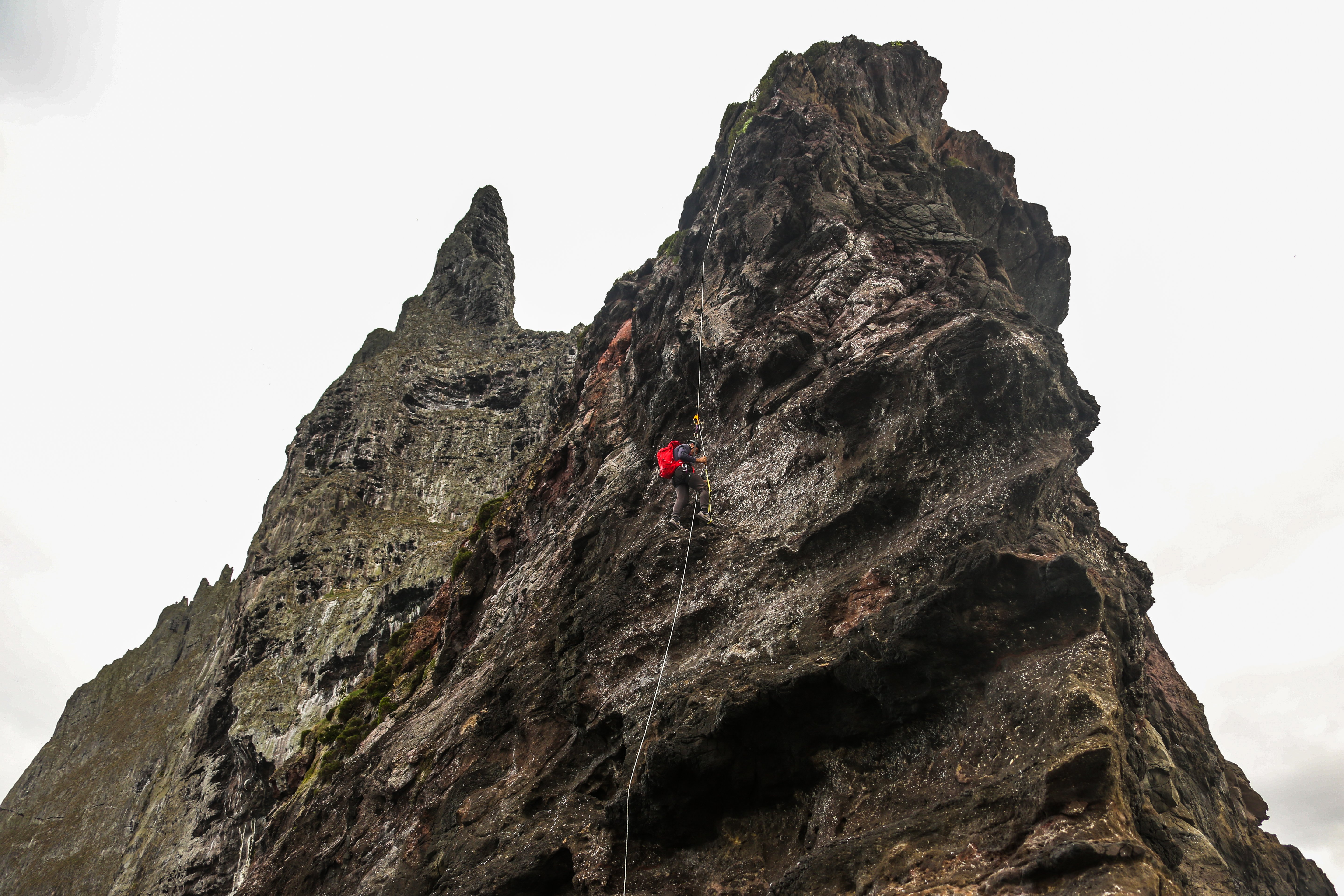 Les scientifiques ont escaladé l’immense rocher, à la recherche du phasme géant. © Australian Museum.