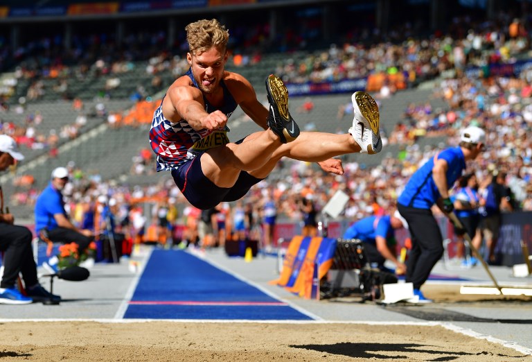 - La deuxième épreuve du décathlon est le saut en longueur. (© Andrej Isakovic / AFP)