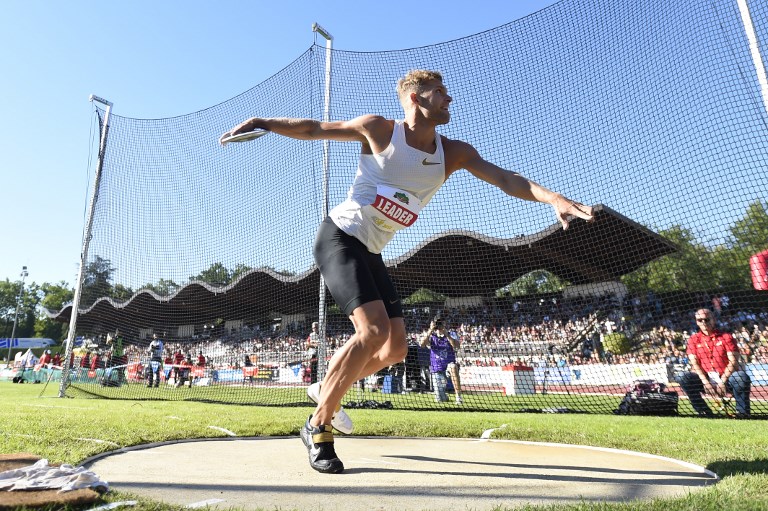 - La septième épreuve du décathlon est le lancer de disque. Ce week-end, Kevin Mayer a lancé le sien à 50,54 mètres : mieux que Ashton Eaton. (© Stephane Kempinaire / KMSP / DPPI / AFP)