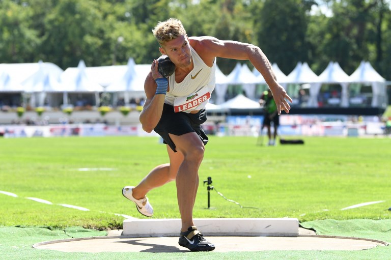 - Le lancer de poids est le troisième épreuve du décathlon. Pour les hommes, ce poids en métal pèse plus de 7 kg. (© Stephane Kempinaire / KMSP / DPPI / AFP)