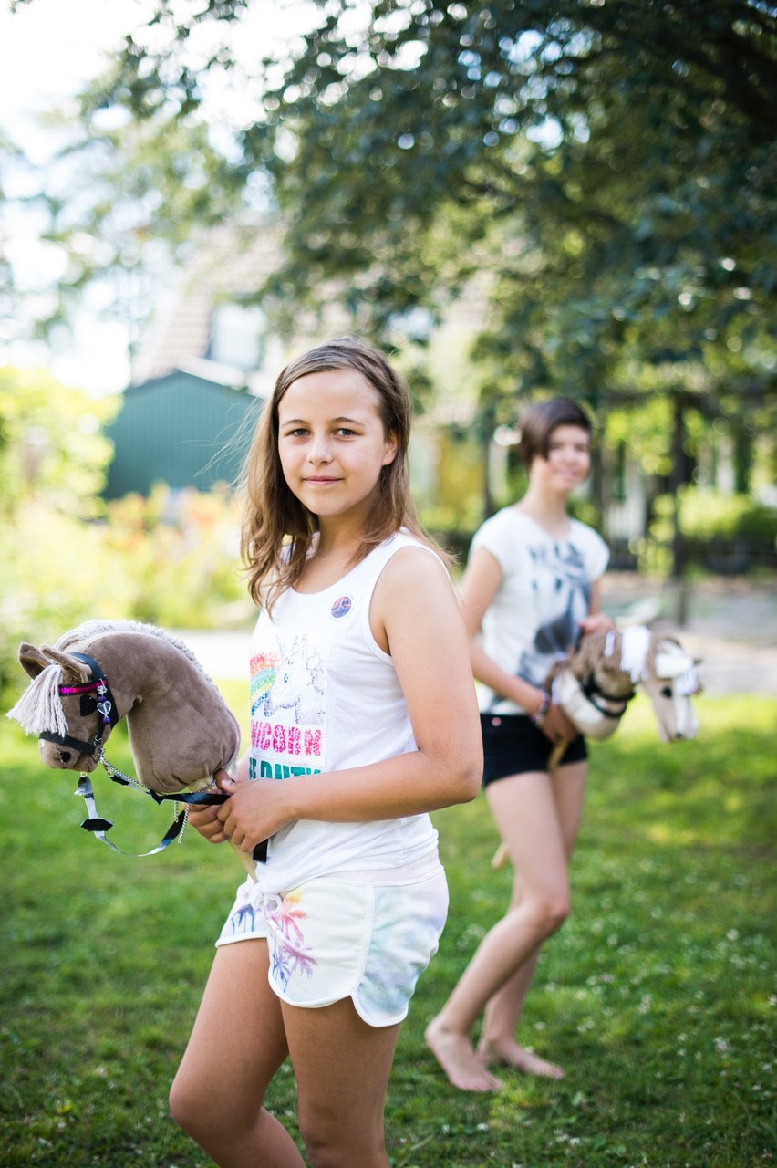 Ingrid et Vega ont elles-mêmes fabriqué leurs « hobby-horses », grâce à des vidéos sur Internet. Elles leur ont même rajouté une bride, comme à un vrai cheval ! © Anna Ledin Wirén